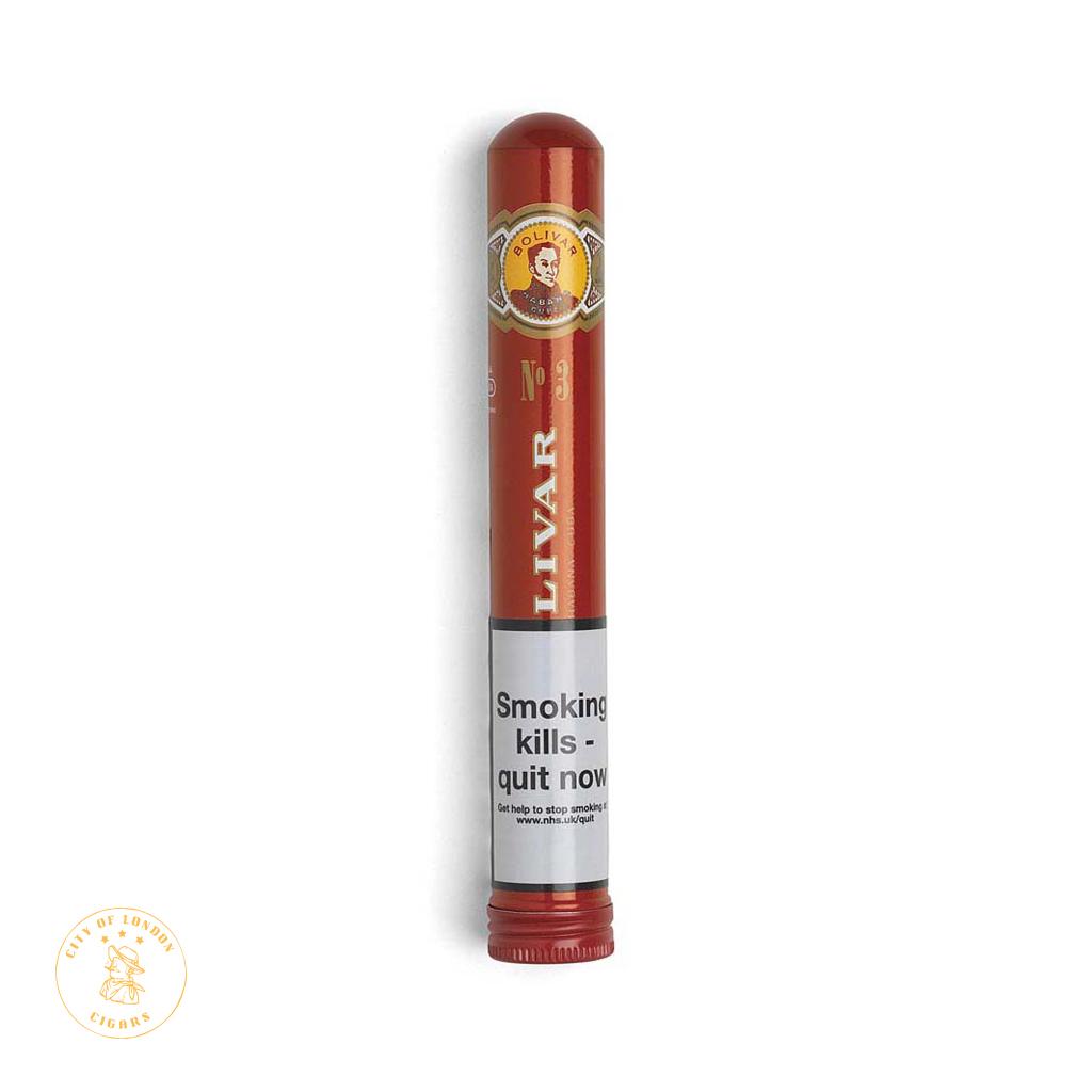 Despite being the smallest of the three sizes, the Bolivar Tubos No. 3 maintains its potent and robust tastes without compromising on speed. This cigar is ideal to enjoy with an espresso because of its complete strength and flavour, as well as its exotic and spicy scents. Details : Strength : 5/5 Origin: Cuba Length: 5 " Ring Gauge: 34