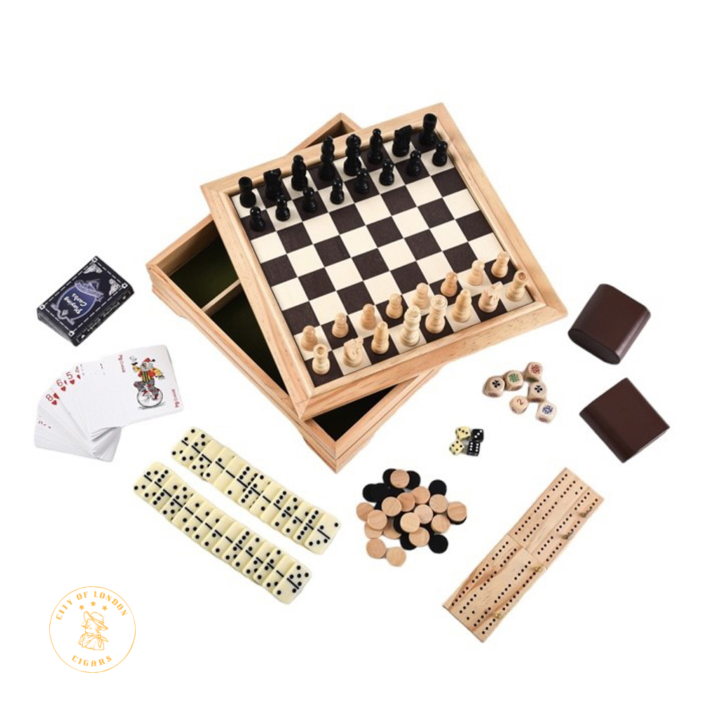 Enjoy a variety of classic games with the versatile Chess Gameset - 7 in 1. This multi-functional set includes chess, checkers, backgammon, and more, all in one convenient package. Crafted for durability and easy storage, it features high-quality pieces and a reversible board for seamless gameplay. Perfect for family gatherings, game nights, or travel, this set offers endless entertainment and is ideal for both beginners and experienced players. A great addition to any game collection.