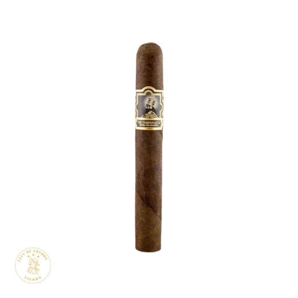 The Tabernacle Box, which has been proven to exceed the highest standards of quality, conveys the narrative behind the cigar's name. The artwork depicts Haile Selassie, the 225th King of Abussinia (present-day Ethiopia). Ras Tafari descended directly from King Solomon and the Queen of Sheba. This clear link leads Ethiopia to claim ownership of the Tabernacle (which housed the Ark of the Covenant), and every cigar smoker's humidor is their Tabernacle. The cigar is meticulously aged with the finest Connecticut Broadleaf wrapper in the world, a fantastic San Andr binder, and fillers from Estelin Nicaragua and the Jamastran Valley in Honduras, providing a rich espresso and spice with an extraordinarily well-rounded chocolate flavor.