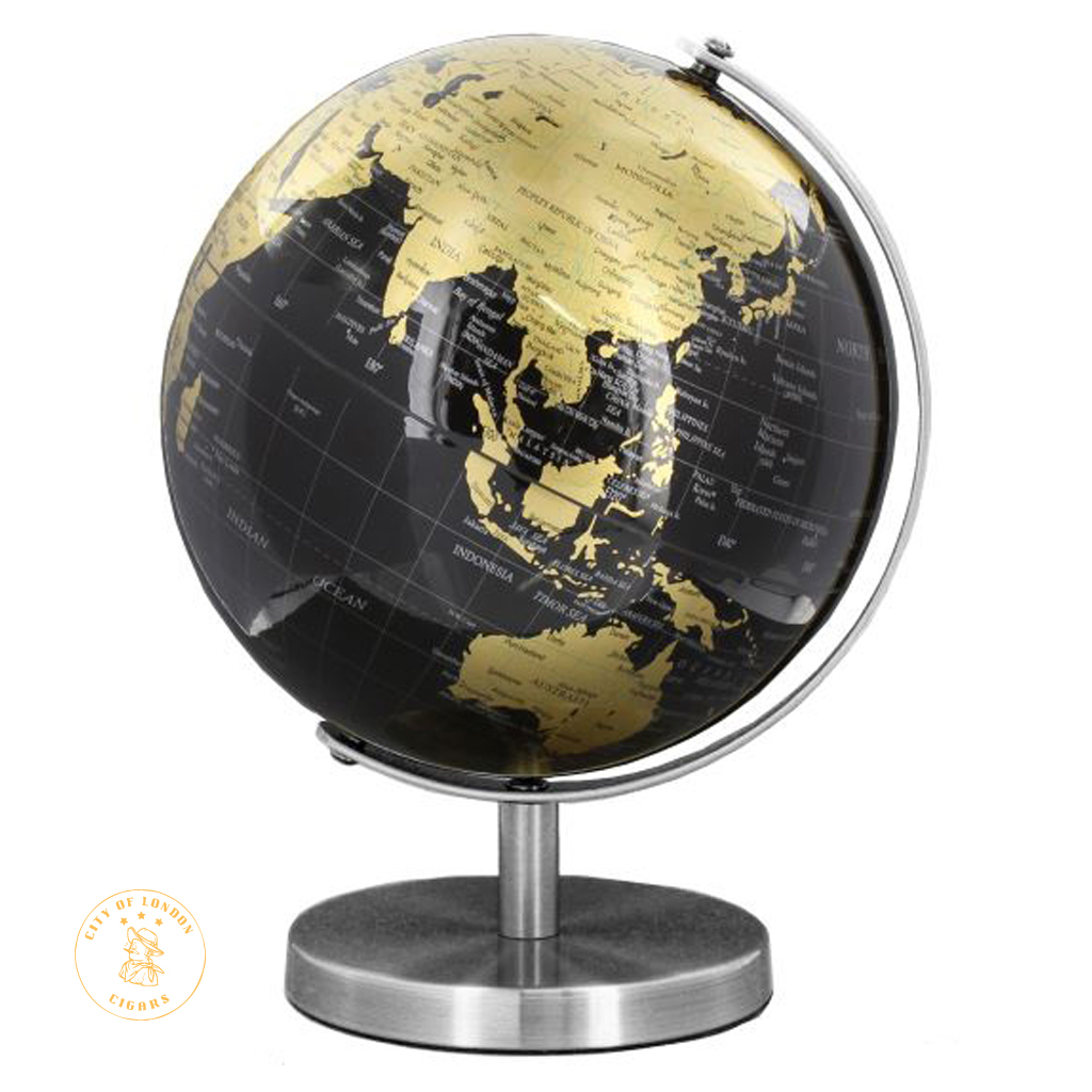 Featuring a luxurious gold and black color scheme, this compact globe offers detailed geographical features in a sleek, modern design. Its small size makes it perfect for desks, shelves, or as a unique decorative piece.