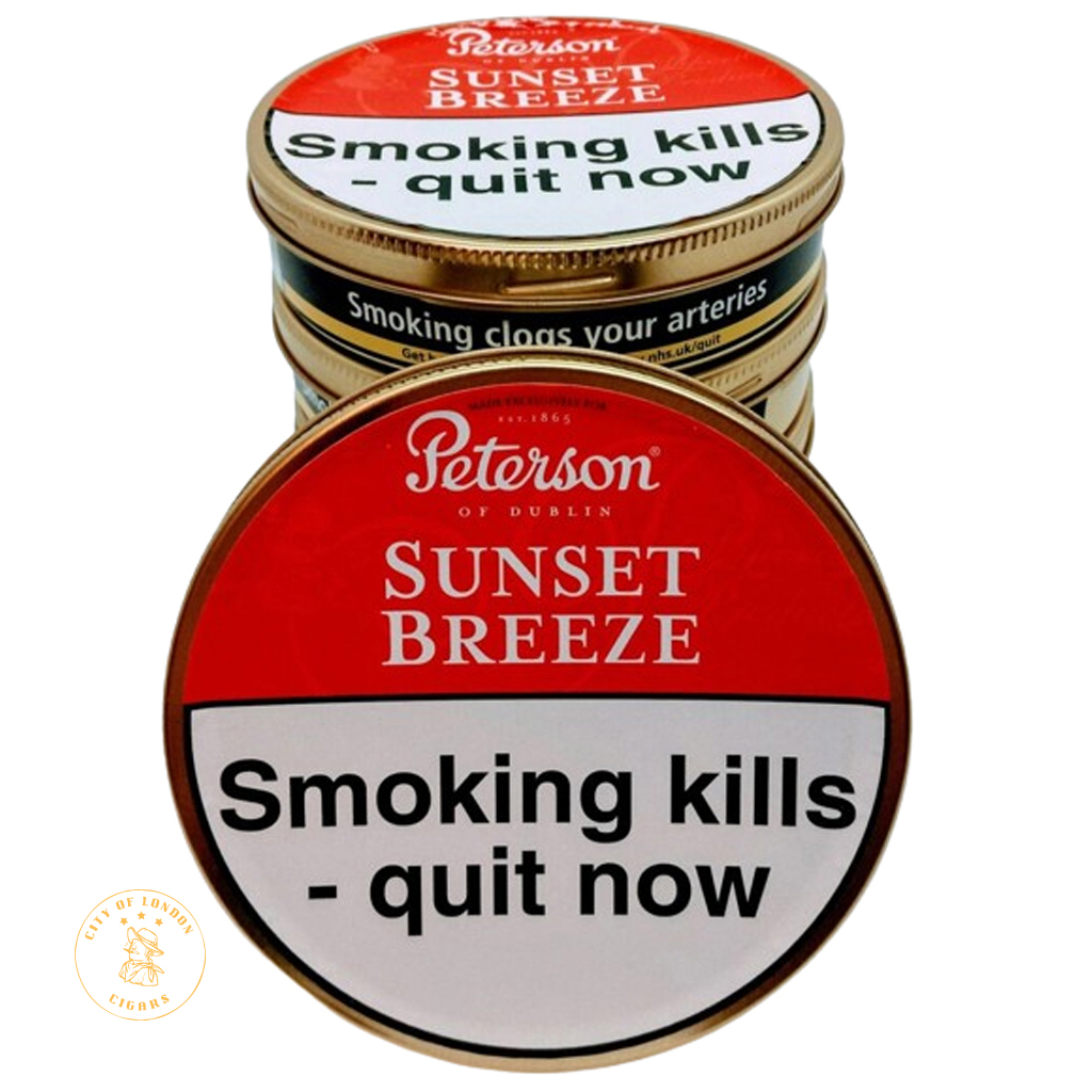 A mildly sweet, aromatic amaretto blend, Peterson's Sunset Breeze combines Virginia, Burley, and Black Cavendish tobaccos. The individual leaves in this blend are detectable and blend well with the casing. The natural sweetness of the Virginia and Black Cavendish lends support to the almond flavour. The natural nuttiness of the Burley complements the amaretto, while the Black Cavendish provides a subtle fermented tone. All in all, it's a smooth, well-balanced smoke that would be a great way to start an evening. The scent of tin is alluring, sweet, and almond-flavored.