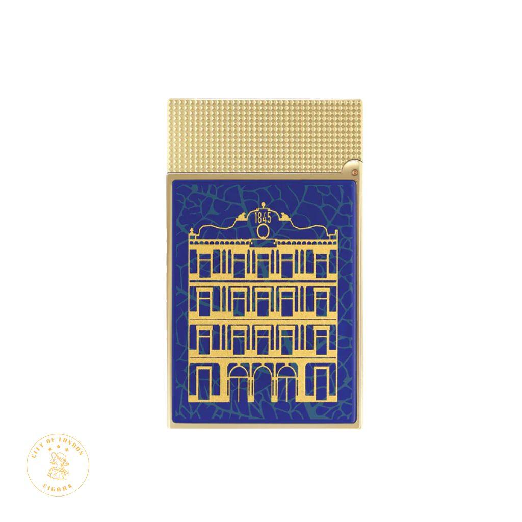 Learn about a remarkable partnership between S.T. Dupont and Partagas that combines the knowledge of two illustrious Houses. S.T. Dupont and Partagas collaborate to create a collection that is both sophisticated and contemporary, emphasising the tobacco leaf motif, the ancient Partagas factory, and the distinctive blue of the new Linea Maestra cigar line. This collaboration is inspired by the new line of premium cigars from Partagas. Enter this realm where heritage and modern design collide to produce a remarkable experience and enduring legacy. - Dimensions: 6.2 x 3.7 1.1 cm. - Adjustable soft flame. - Uses gas refills