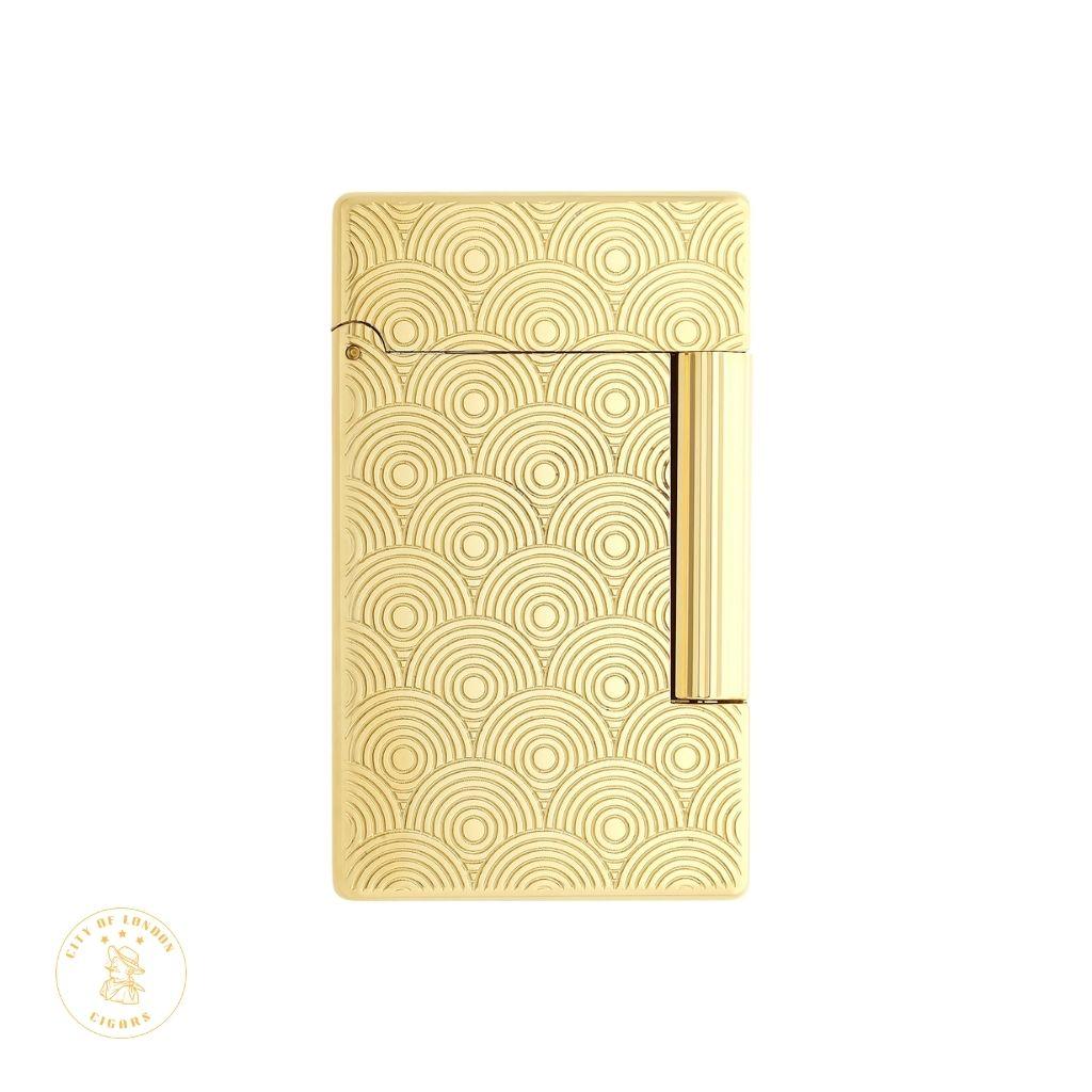 A timeless design with a refined guilloche pattern and elegant golden finish. The S.T. Dupont Initial lighter delivers a classic double yellow flame, combining style with reliable performance. Details: Dimensions: 55 34 10 mm Weight: 95 g Material: Brass Double yellow flame Compatible stone: Red (Ref. 900650) Compatible gas refill: Blue (Ref. 900434) Delivered empty, refill sold separately