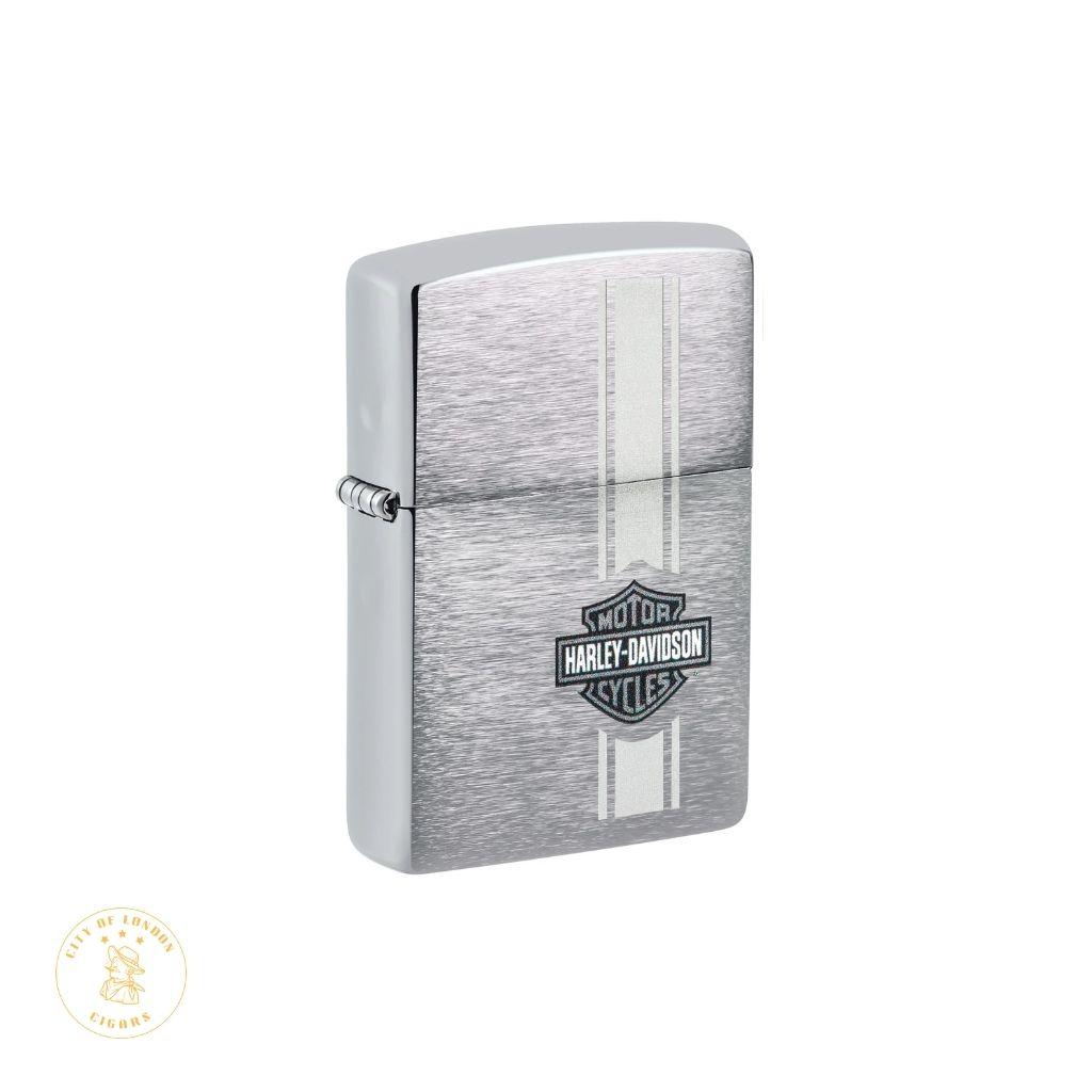 This lighter displays the iconic Harley-Davidson bar-and-shield logo on a black matte finish. Packaged in a gift box, combining style with Zippos legendary build quality. Features: Genuine Zippo windproof lighter with the unmistakable Zippo "click" Comes packaged in a gift box Refillable for a lifetime of use; recommended use with genuine Zippo premium fuel, flint, and wicks Harley-Davidson bar-and-shield logo Black matte finish